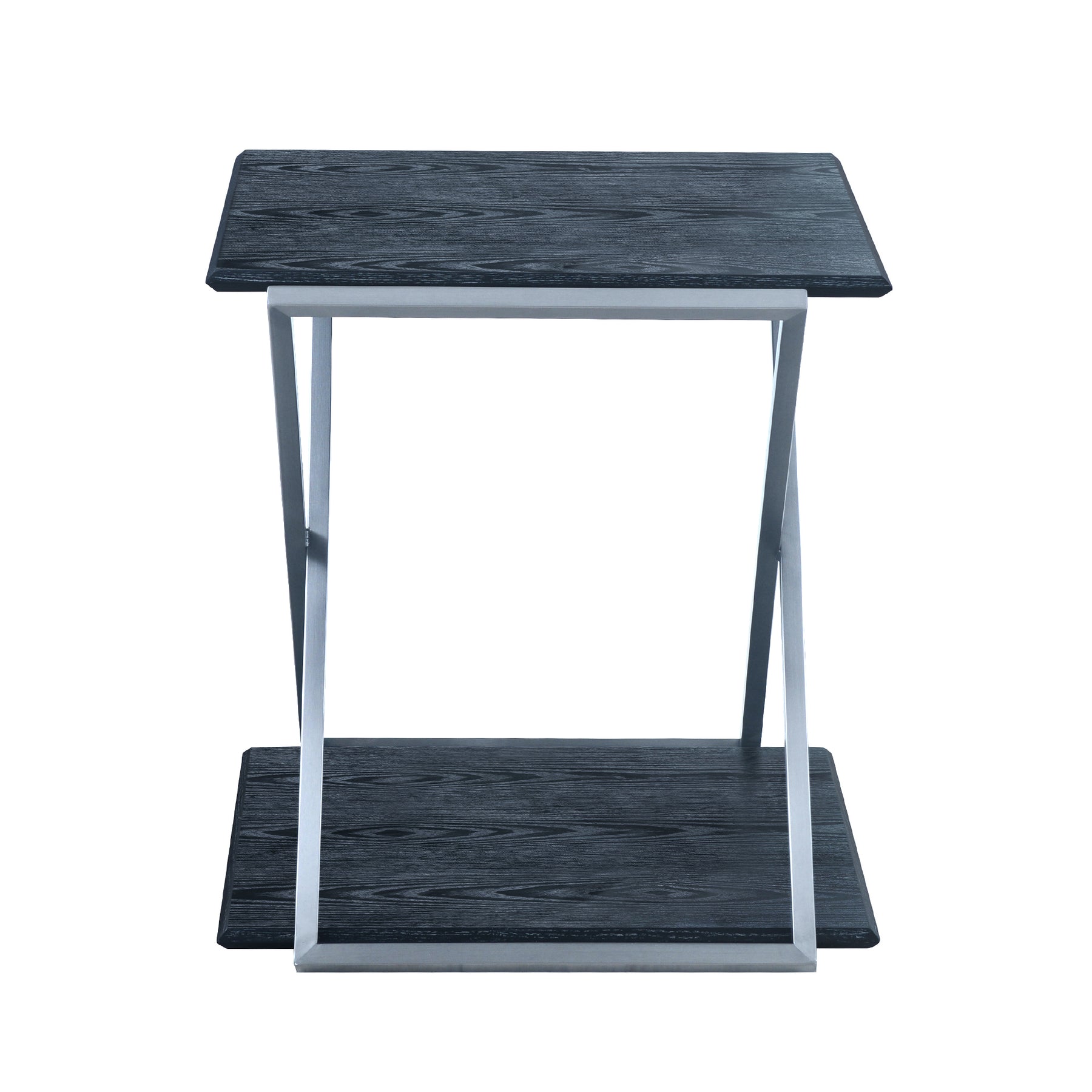 The Westlake Black Wood and Brushed Steel End Table from Armen Living is what your living room needs to take your home decor to the next level. The Westlake table features dual resting shelves that maximize your storage space - giving you ample surface area to place your favorite personal items or decorative centerpieces. The wood of the End table is waterproof and wear-resistant, fighting off everyday wear and tear and giving you years of enjoyment. The craftsmanship shown through the design of the table is very apparent - the rich silver accents, the unique x-shape frame, and the gorgeous wood all contribute to this special piece.Take care of your furniture