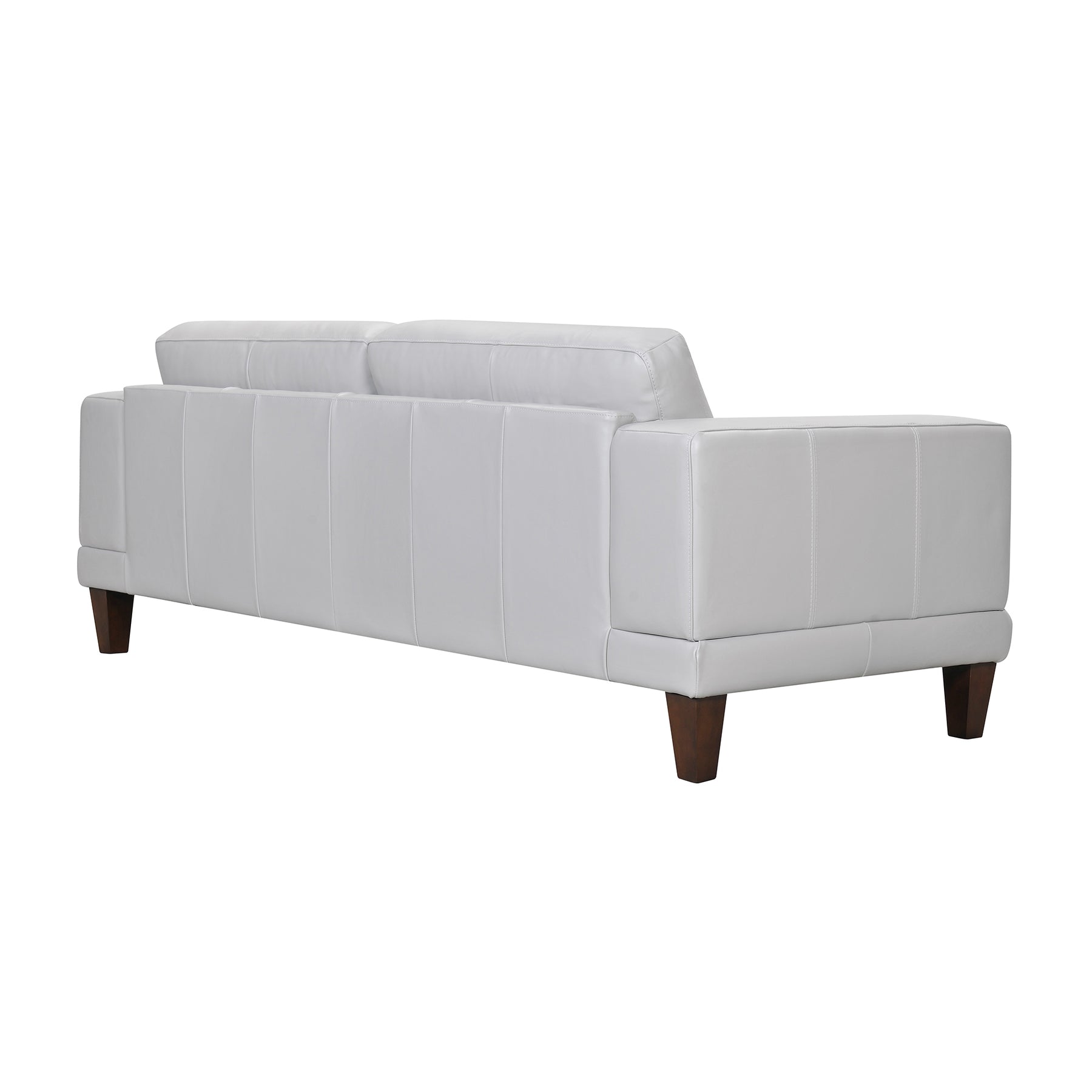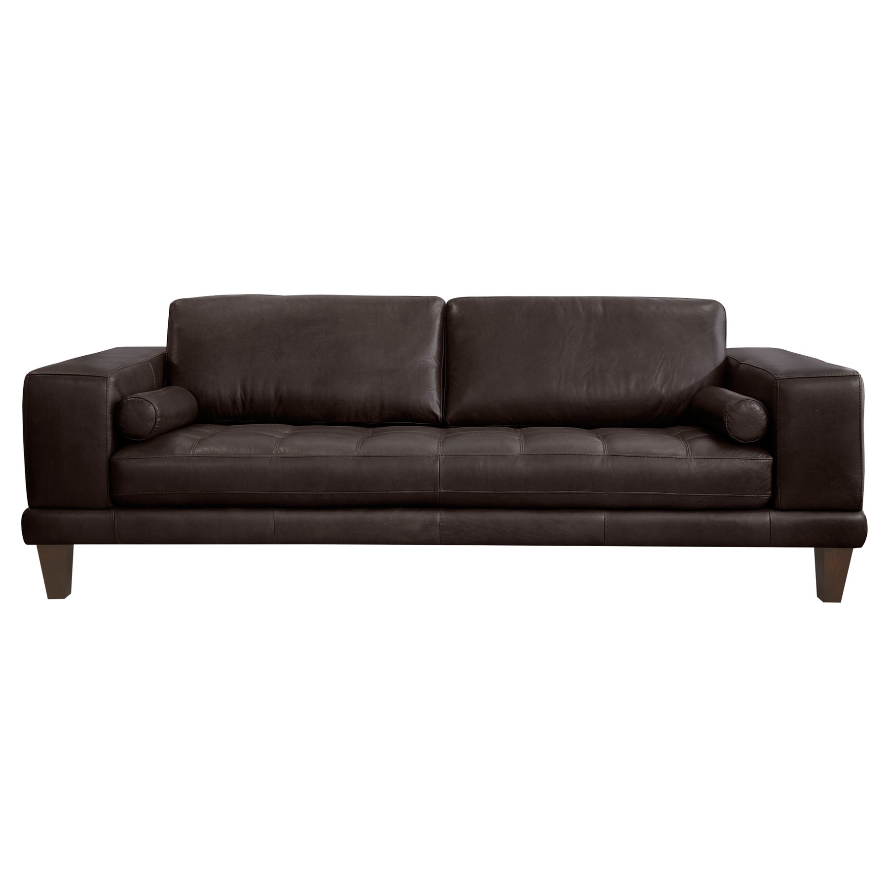 The Armen Living Wynne contemporary genuine leather sofa is an ideal comfort piece for the modern household. Sporting a sleek genuine cowhide leather upholstered frame supported by Dacron fiber to prevent wrinkles and cracks, the Wynne is guaranteed to maintain its comfort and durability for many years to come. The Wynne's plush seat is elegantly tufted and accented beautifully by the addition of two cylindrical throw pillows. Aesthetically modern and fashion forward, the sophisticated look and durability of its hardwood brown legs support the Wynne's design. The Wynne sofa can be paired with the Wynne loveseat and chair to create a cohesive living room experience that is sure to elicit complements at your next gathering. The Wynne sofa is available in your choice of rich black or beautiful brown leather.Product Dimensions