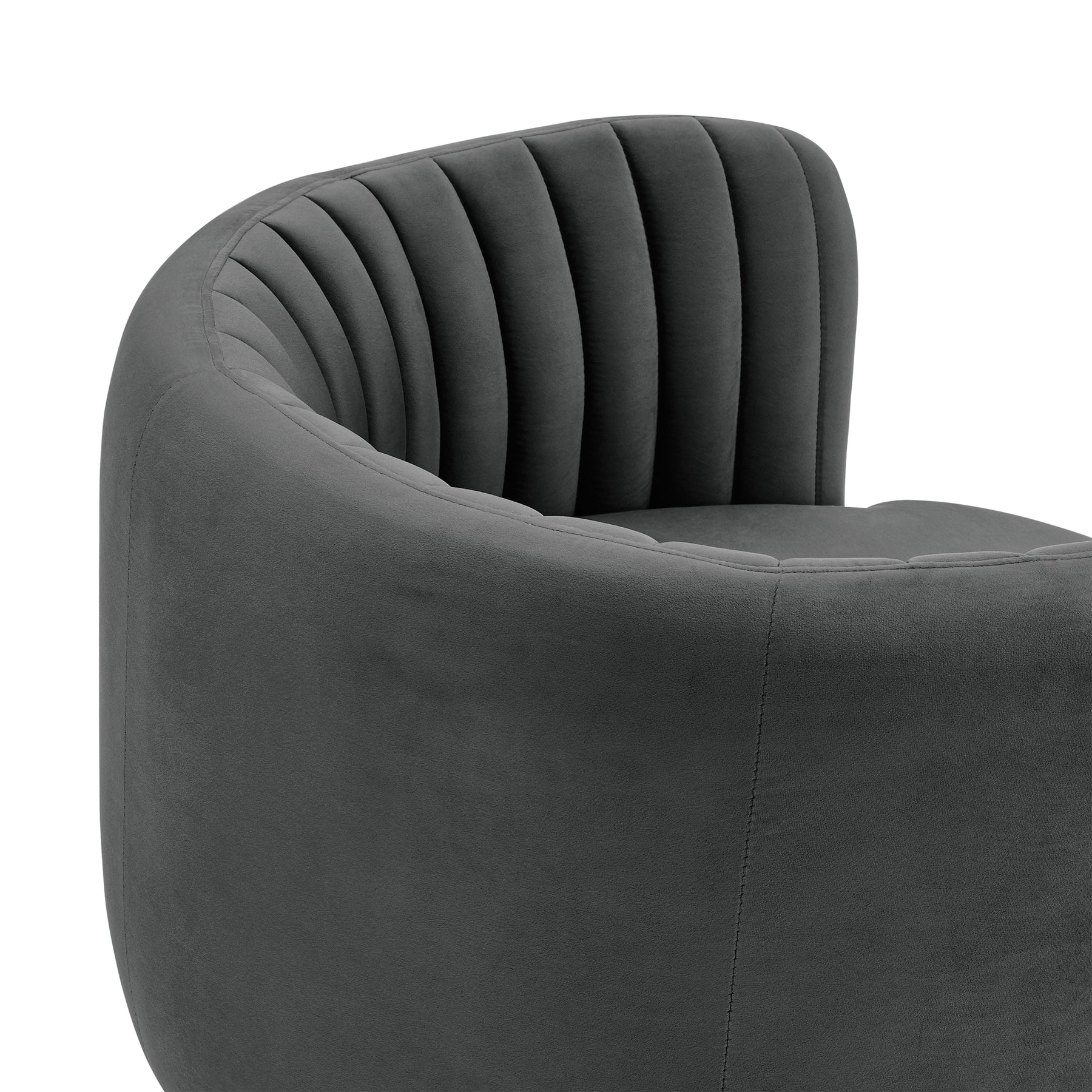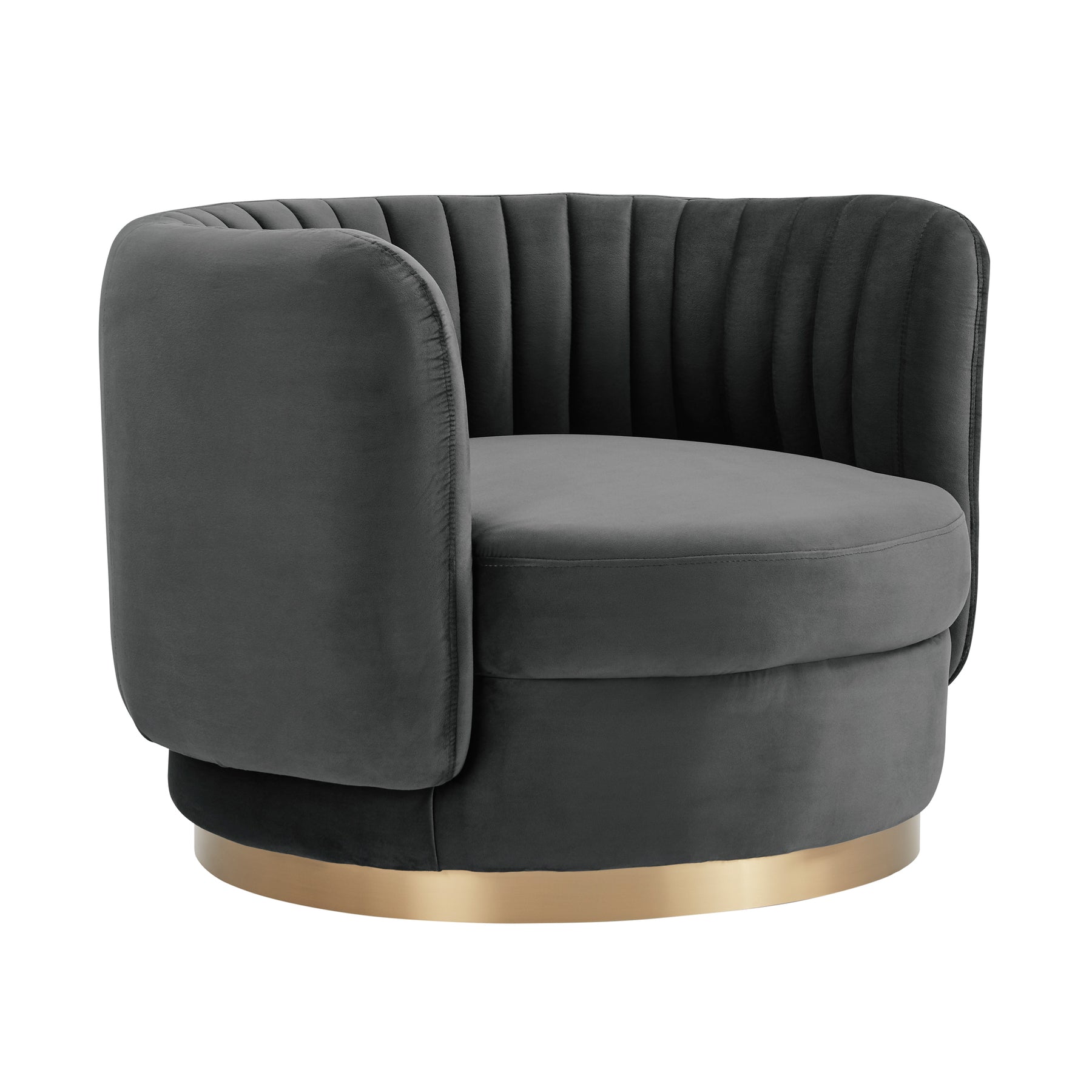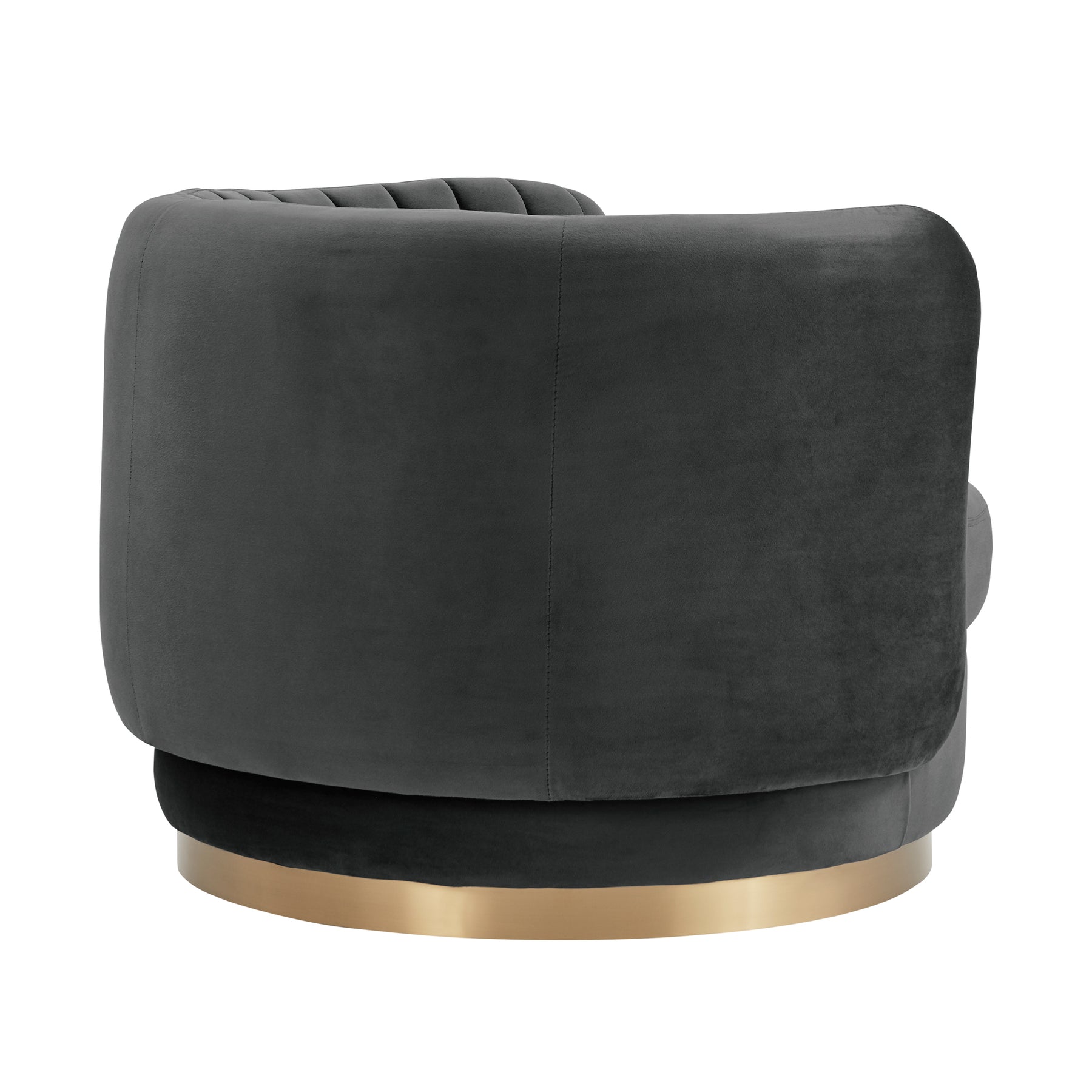 The Davy Tufted Velvet Swivel Chair from Armen Living is such a visually appealing piece that has practical elements to make this the best chair for your home. The rounded chair back encapsulates your body to make you feel comfortable and secure. The foam-padded seat cushion is plump and soft, making this your new favorite chair in the house to relax in. The Davy has a very special feature that brings a swivel function to this already fantastically designed chair; swivel in a full 360-degree motion for maximum mobility. The rich velvet upholstery is elegantly combined with the thick gold brushed base to create an overall eye-catching addition to your home. The Davy is available in your color choice of Blush, Dark Gray, and Taupe.Product Dimensions