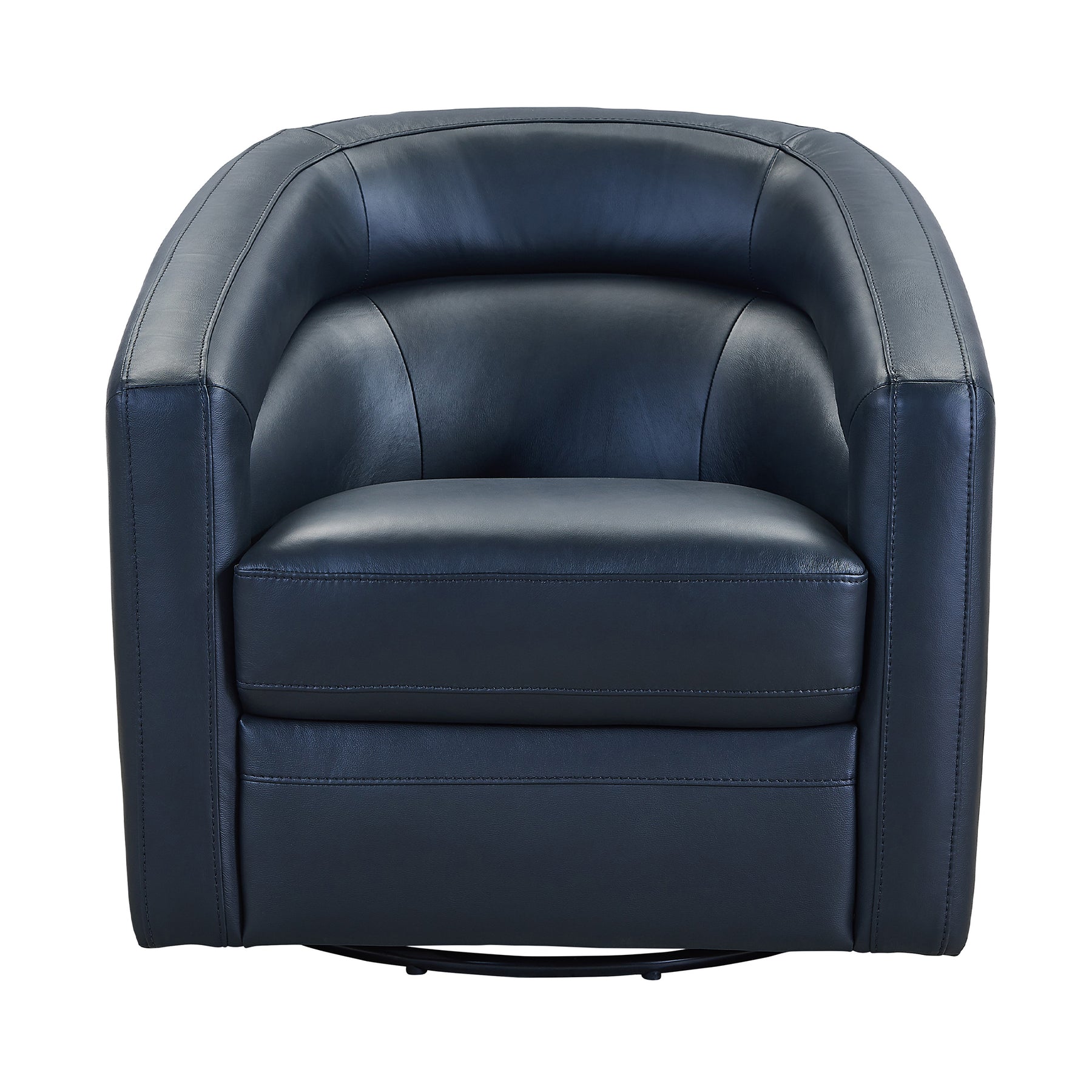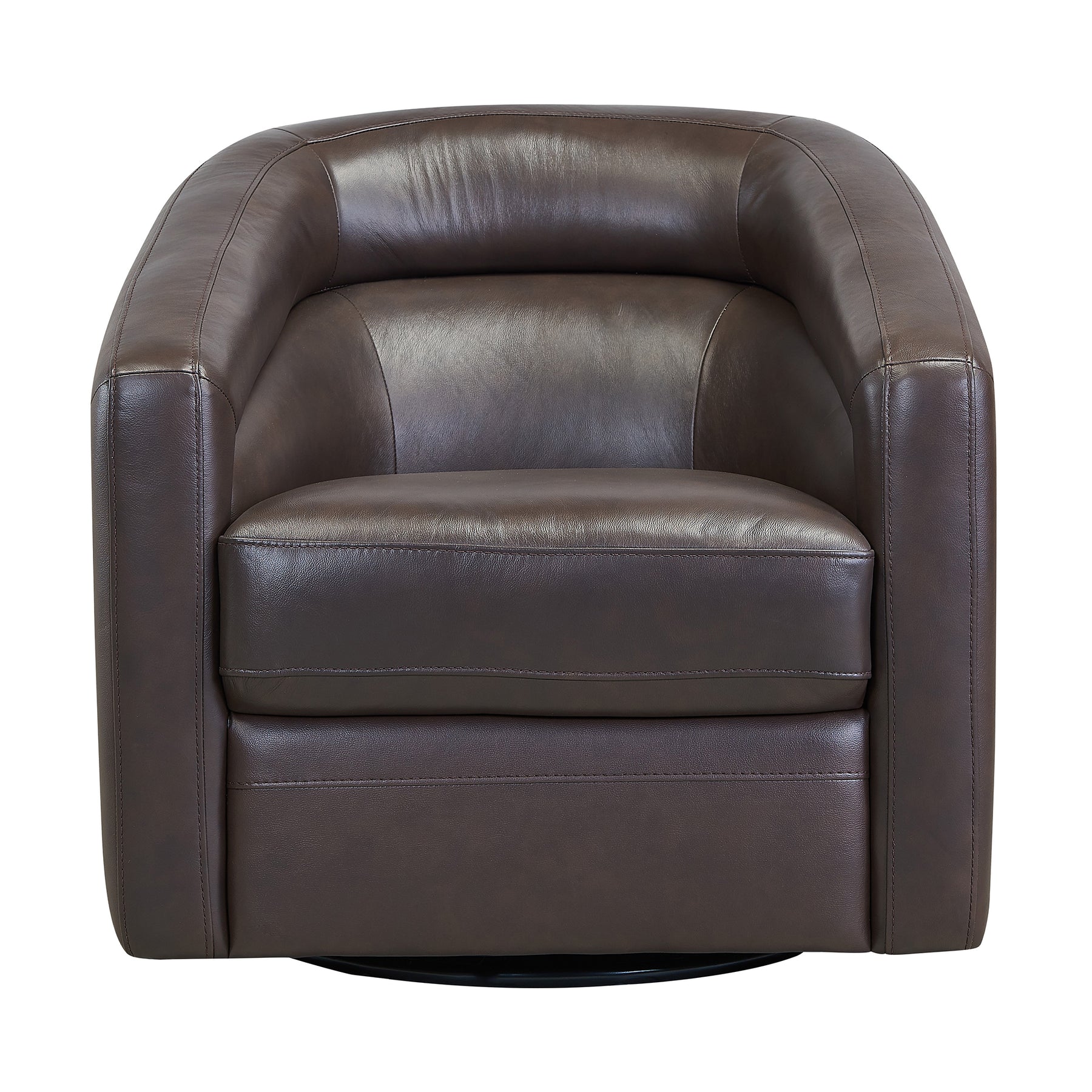 The Armen Living Desi living room swivel accent chair includes a plump, comfortable padded design and a turning base that allows for maximum user mobility. This combination of features Provides an enhanced user experience without compromising on the chair's elegant contemporary aesthetic quality. The beautiful desi is constructed from durable wood and high-quality metal, assuring exceptional longevity for many years to come. The chair's sleek 100% genuine leather upholstery and high-resiliency 2. 2 density foam cushioning offers superior user comfort and support. The Desi's tall arms, padded cushion, and rounded back design assure relaxation after a long day of work. It is the perfect size accent chair that is ideal for compact spaces or any space in your home. The foundation of the product is supported by solid wood for a sturdy and stylish aesthetic without comprising practicality and functionality of this item. This item is a versatile piece that can be ideal for living room, bedroom, family room or even as a desk chair. This product ships in one box with easy and quick set up. We stand by the quality, the craftsmanship and the integrity of our product by offer 1-year warranty for all our products. A wonderful piece for the living room, the Desi is certain to satisfy. The stylish Desi comes in 3 different color options; black, Dove Gray, and espresso leather.Product Dimensions