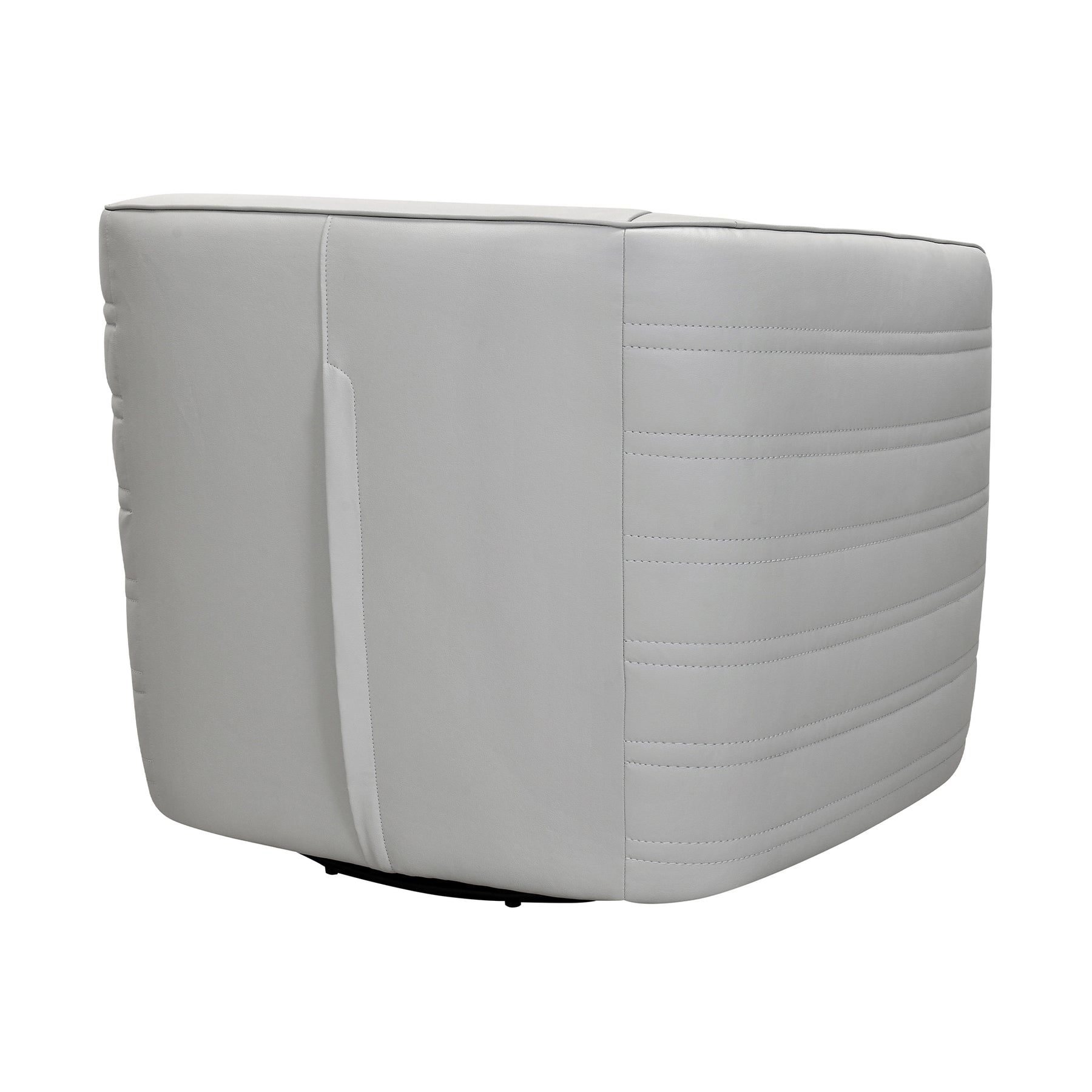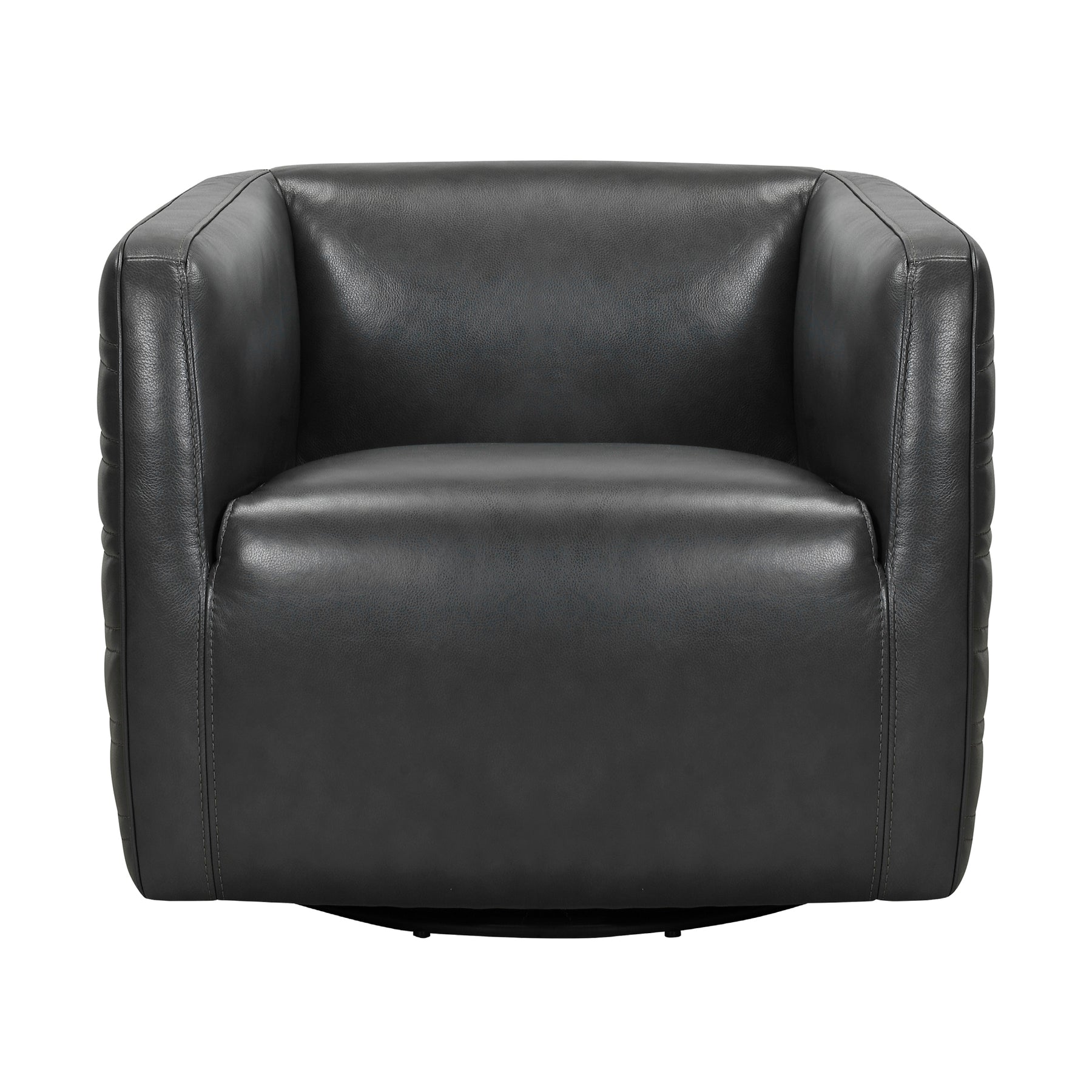 The Armen Living Melanie Contemporary 45-Degree Return Swivel Chair is a brilliant addition to any modern household. The Melanie Swivel Chair is upholstered by hand in ultra-soft, sleek, durable 100% genuine leather. Featuring a rounded back and spacious seat, its metal swivel mechanism base allows you to turn and glide swivel function. The ultra-comfortable foam-padded cushion will make you never want to leave your seat again, leaving you in a constant state of relaxation. This beautiful living room chair also features a sturdy hardwood frame that assures dependability and will give you years of enjoyment. The Melanie chair is available in dove gray and pewter genuine leather. We stand by the quality, the craftsmanship, and the integrity of our product by offering a 1-year warranty for all our products. We want our customers to enjoy our product and we will always be there to help with our top-notch customer service support.Product Dimensions