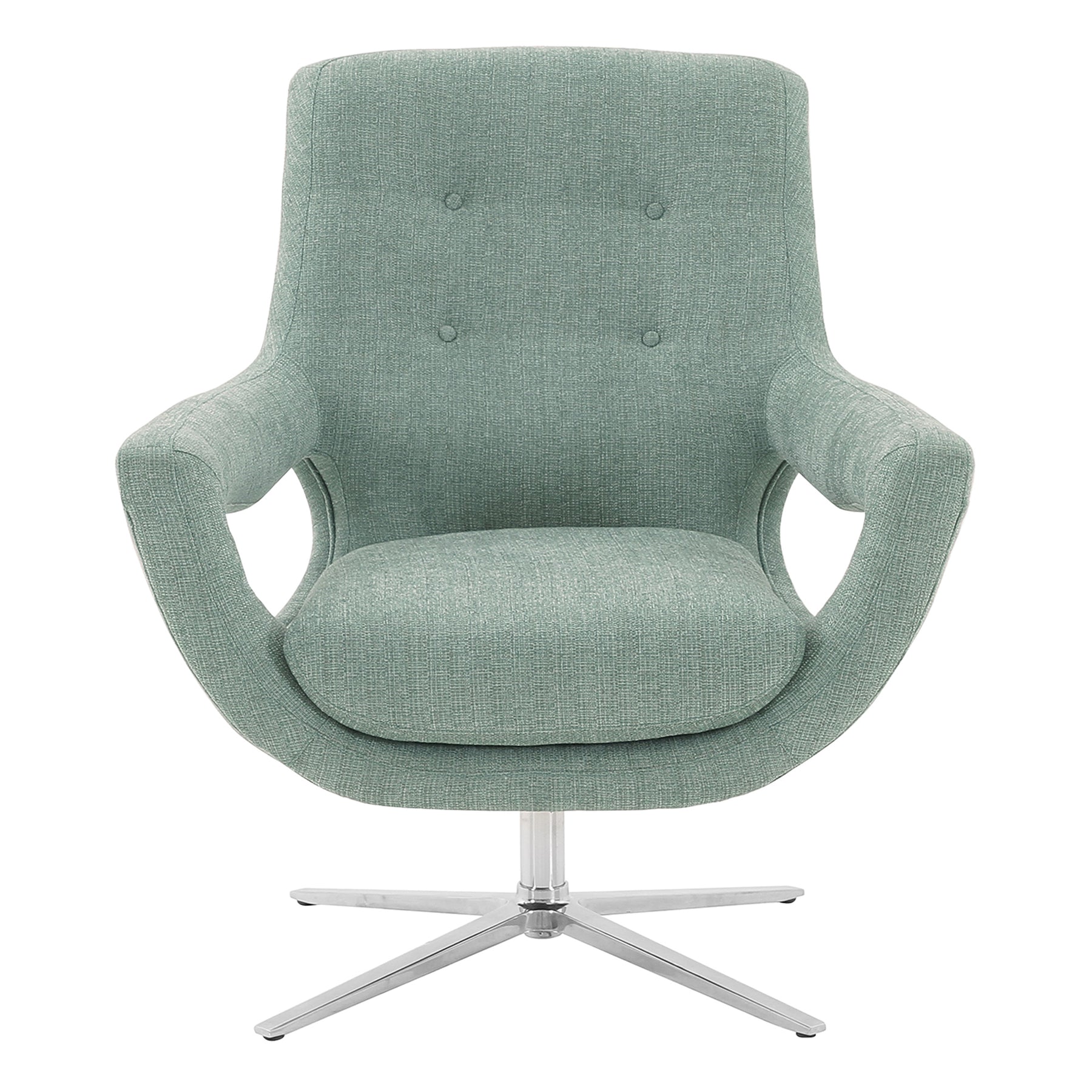 The Armen Living Quinn contemporary swivel accent chair is a brilliant addition to any modern household. This beautiful living room chair features a polished stainless steel finish that assures dependability without compromising on the quality of the product. This accent chair features a 360-degree swivel function with a special starbase to anchor this chair. For added style, Quinn's elegant tufted back design is wonderfully complemented by the unique bucket seat design. The open arm design makes this chair a great breathable seating option. The soft linen upholstery is made enhanced by the foam-padded seat, assuring maximum comfort and relaxation. The Quinn club chair is available in gray and blue linen fabric. We stand by the quality, the craftsmanship, and the integrity of our product by offering a 1-year warranty for all our products. We want our customers to enjoy our product and we will always be there to help with our top-notch customer service support.Product Dimensions