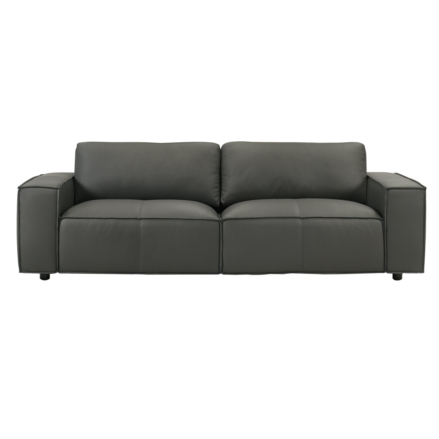 Elevate your living space with the Clayton Living Room Set, featuring a spacious 93-inch sofa and a 76-inch loveseat, both designed to deliver modern sophistication, everyday comfort, and timeless durability. Wrapped in smooth premium top-grain genuine leather, this two-piece set is available in two versatile colors—Anthracite Gray, which makes a bold, contemporary statement, or Ochre, which brings warmth and richness for a more inviting, cozy atmosphere. The Clayton set is designed with wide track arms, sleek lines, and a low-profile silhouette that embodies modern living while seamlessly fitting into transitional or minimalist interiors. The 93-inch sofa comfortably seats three adults, offering generously cushioned seats and supportive loose backs that balance structure with cozy sink-in comfort. The matching 76-inch loveseat is tailored for two, making it an ideal complement for more intimate seating or as part of a cohesive arrangement. Together, the sofa and loveseat provide the perfect balance of space, comfort, and design flexibility—whether you’re hosting gatherings, enjoying quiet evenings, or creating a stylish family hub. Built on sturdy wooden frames, both pieces are designed to last, providing exceptional durability and reliable support over time. The premium leather upholstery enhances the luxurious feel while offering easy maintenance—simply wipe clean with a damp cloth to preserve its beauty season after season. Plus, because assembly is minimal, setup is simple and fast, so you can get straight to the good part: enjoying your space. Whether you choose the dramatic flair of Anthracite Gray or the warm elegance of Ochre, the Clayton Living Room Set offers a perfect blend of contemporary style, practical comfort, and lasting durability. Ideal for modern homes, lofts, or transitional spaces, this set becomes the centerpiece of your living room, making every moment spent at home more inviting and stylish.Product Dimensions