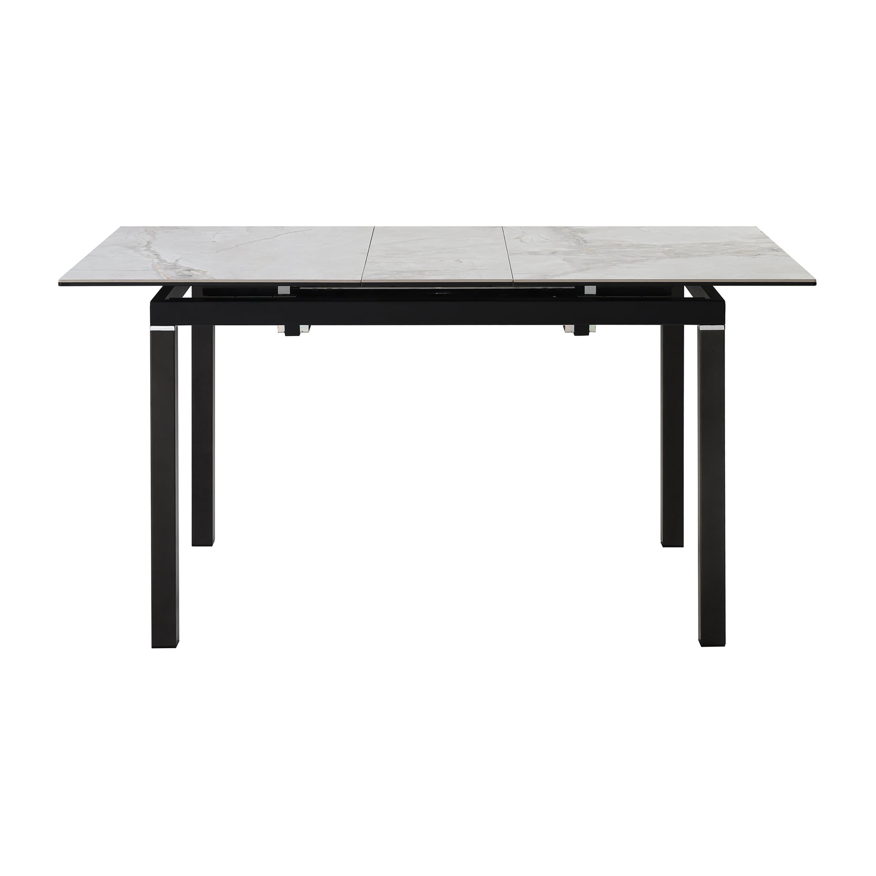 Dine, entertain, or enjoy the company of friends and family with the Giana Kash 5 Piece Extendable Dining Set with Faux Leather Chairs. This set includes 1 Giana extendable dining table and 4 Kash dining chairs. With a slim and streamlined profile, the parsons chair brings effortless style and elegance to your home. It is perched upon slender black metal legs to make any room appear open and spacious. It features a tall back with a subtle curve to provide exceptional lumbar support. With a simple and elegant design, our dining room chair focuses on bringing comfort and convenience to your dining table. It can easily transition anywhere from your living space to your home office to provide a comfy seat for everyday functions. This kitchen chair is upholstered in UV and stain-resistant faux leather which does not crack or fade easily to provide easy care and maintenance. The Giana dining table features an extendable a rectangular tabletop, perched upon a crisp black metal base. The tabletop is crafted in Carmen Grey Sintered Stone to offer a luxe appeal with easy maintenance. Sintered stone is UV-resistant and will not fade or lose integrity under heat or cold. With a durable construction and versatile appeal, our dining table is perfect for both casual and formal meals in a kitchen, dining room, or living space. The dining table can easily extend to seat up to four to six individuals. The Giana Kash dining set is available in 5 and 7 piece set configurations and features a camren grey sintered stone table top with black base and your choice of taupe grey, brown, or black faux leather upholstery.Product Dimensions