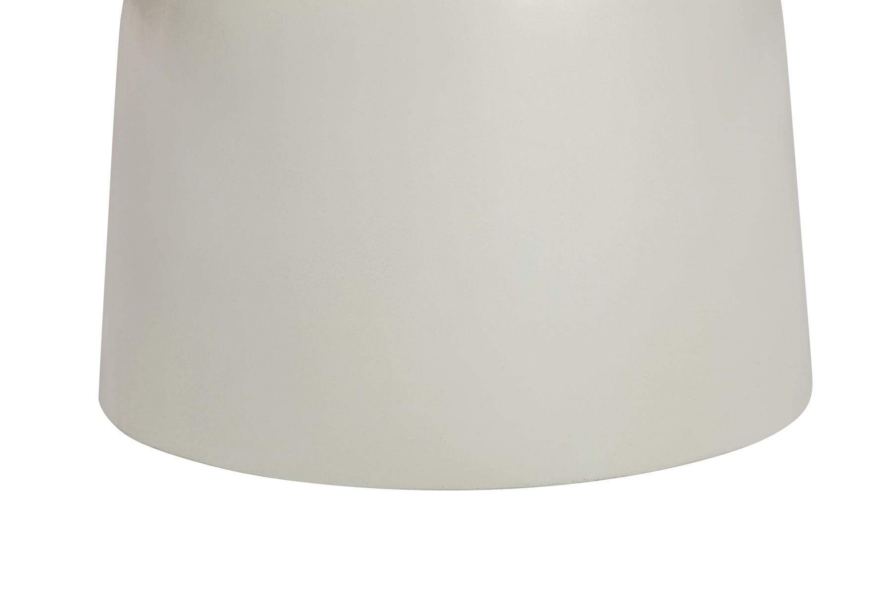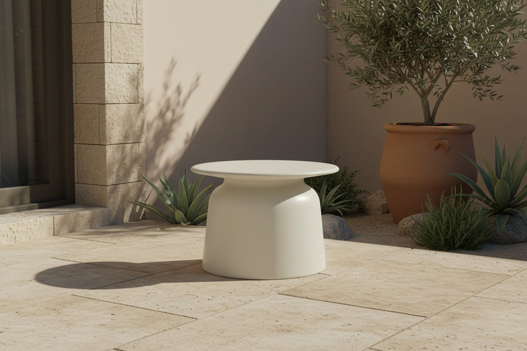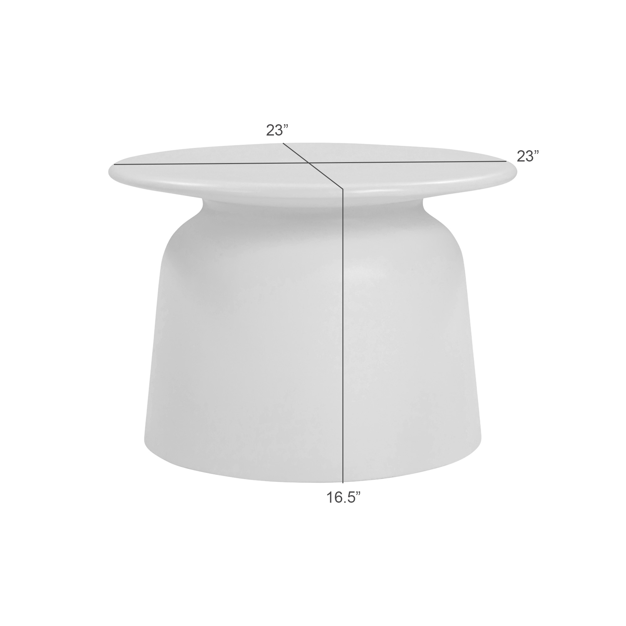 The Lithia Coffee Table is a sculptural concrete centerpiece designed to anchor modern outdoor seating areas. With its round top and bold pedestal base, it creates a gallery inspired presence while offering a practical surface for drinks, books, and outdoor decor. The clean, minimal silhouette brings visual clarity to patios, terraces, and open air lounges without overwhelming the space. Crafted from solid concrete, the table features a smooth refined surface that highlights the strength and character of the material. The circular top appears to rest lightly above the tapered pedestal base, creating a balanced profile from every angle. Finished in a soft ivory concrete tone, it adds a light and calming presence that pairs easily with outdoor upholstery, woven textures, and natural materials. Sealed for outdoor use, the Lithia Coffee Table is built to withstand everyday exposure while maintaining its appearance over time. Ideal as the focal point of an outdoor lounge, it delivers quiet sophistication through form, proportion, and material integrity.