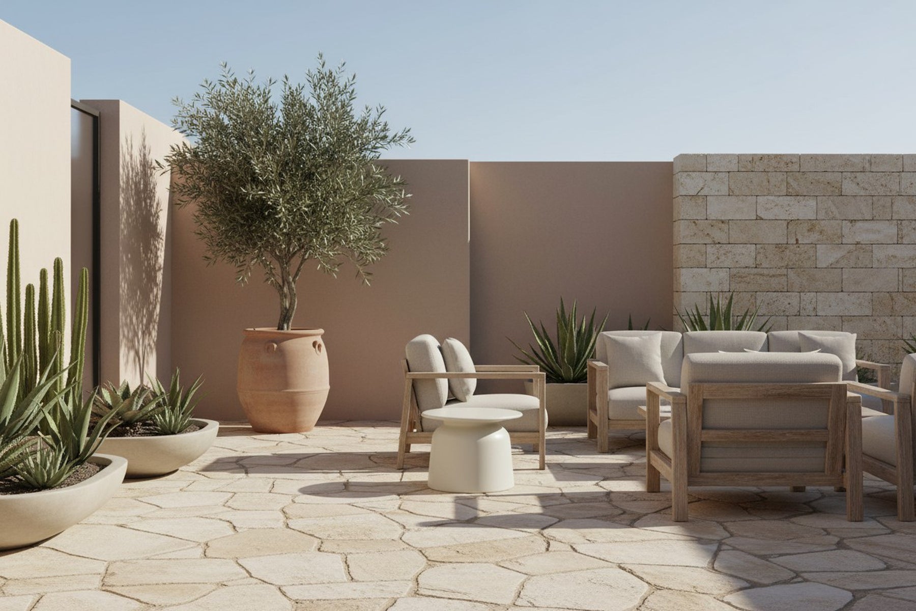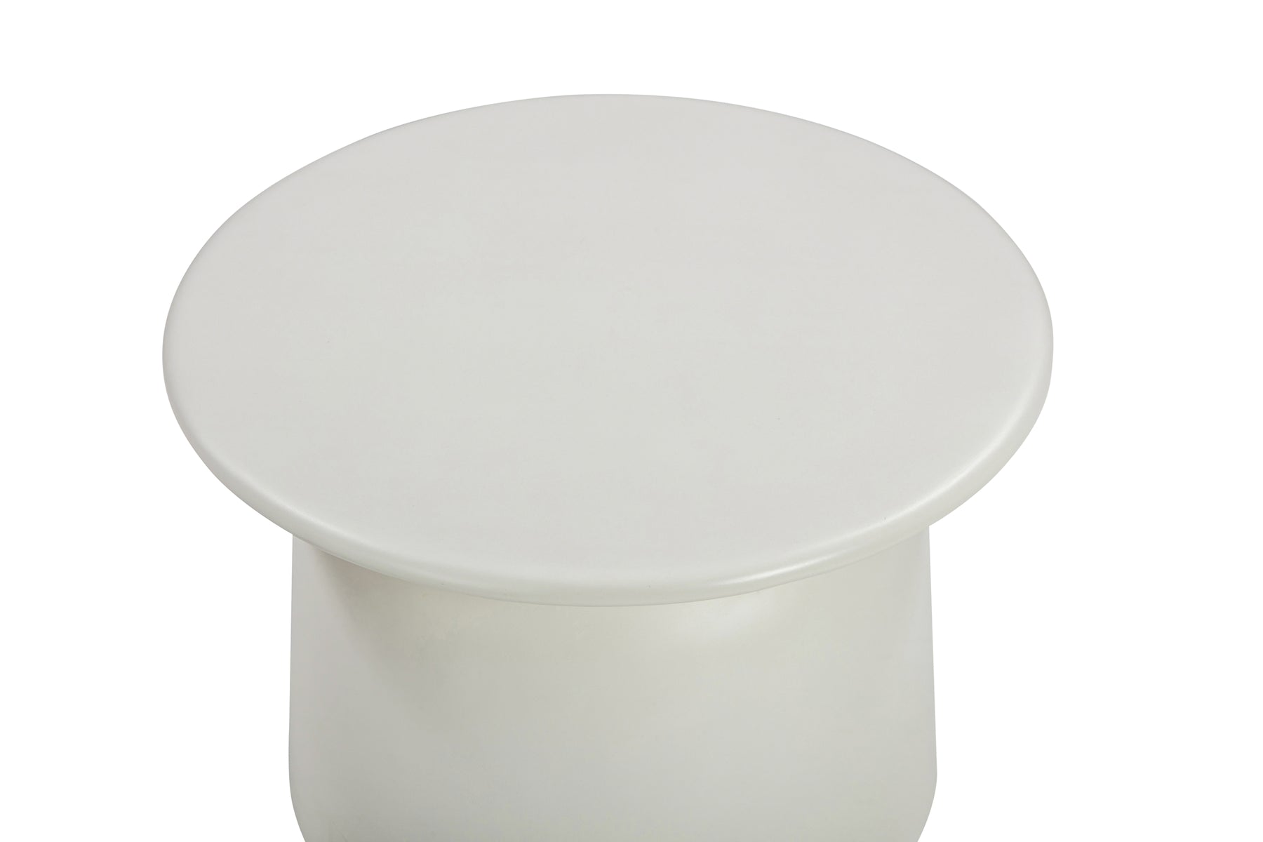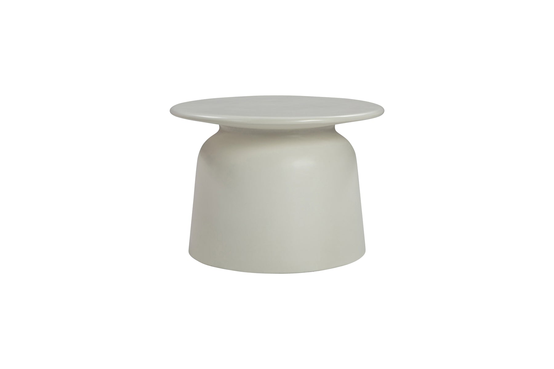 The Lithia Coffee Table is a sculptural concrete centerpiece designed to anchor modern outdoor seating areas. With its round top and bold pedestal base, it creates a gallery inspired presence while offering a practical surface for drinks, books, and outdoor decor. The clean, minimal silhouette brings visual clarity to patios, terraces, and open air lounges without overwhelming the space. Crafted from solid concrete, the table features a smooth refined surface that highlights the strength and character of the material. The circular top appears to rest lightly above the tapered pedestal base, creating a balanced profile from every angle. Finished in a soft ivory concrete tone, it adds a light and calming presence that pairs easily with outdoor upholstery, woven textures, and natural materials. Sealed for outdoor use, the Lithia Coffee Table is built to withstand everyday exposure while maintaining its appearance over time. Ideal as the focal point of an outdoor lounge, it delivers quiet sophistication through form, proportion, and material integrity.