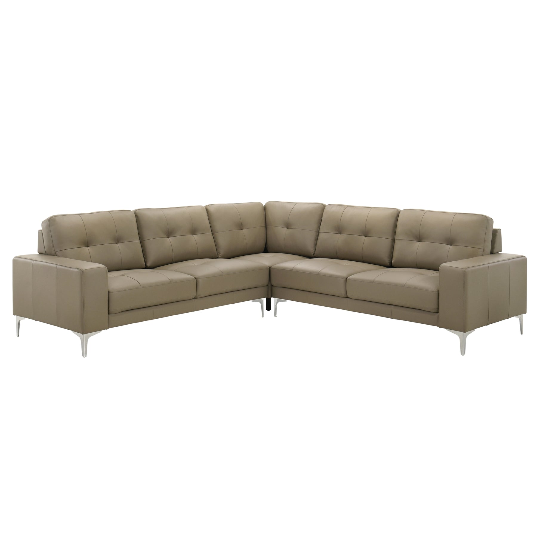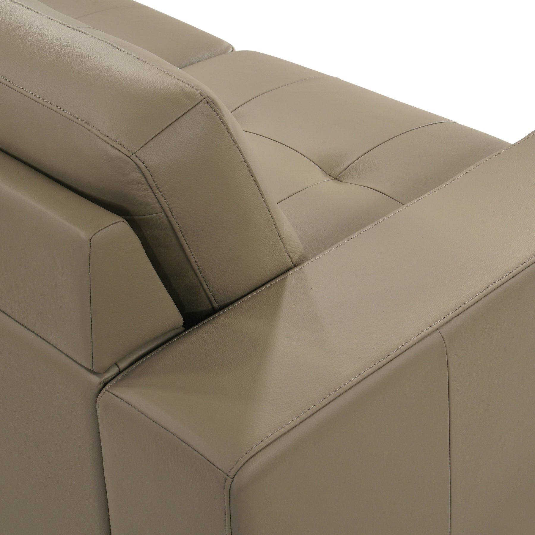 Transform your living room into a sophisticated and welcoming retreat with the Pimentel 102 in. Sectional Sofa, available in Cola or Khaki top-grain genuine leather. Crafted for modern living, this sectional combines generous seating with refined style, making it the perfect choice for families, entertaining guests, or simply stretching out and relaxing at the end of the day. With its expansive 102-inch frame, the Pimentel sectional provides room for up to four people without compromising on comfort. The supple leather upholstery offers a luxurious feel and is designed to age beautifully, adding character over time. Its tufted backrest adds timeless detailing, while the structured track arms and sleek cantilever metal legs create a clean-lined silhouette that enhances contemporary interiors. Beneath the stylish exterior lies high-density cushioning and resilient support that adapts to your body, ensuring hours of comfort whether you’re binge-watching shows, hosting gatherings, or enjoying quiet moments with a book. Designed for versatility, this sectional becomes the natural centerpiece in open-concept living rooms, lofts, or large family spaces, blending elegance with everyday functionality. Low-maintenance care makes it easy to preserve its sophisticated look — simply wipe with a damp cloth and air dry. With minimal assembly required and a 1-year warranty included, the Pimentel sectional is more than just a seating option — it’s a long-term investment in style, comfort, and quality.Product Dimensions