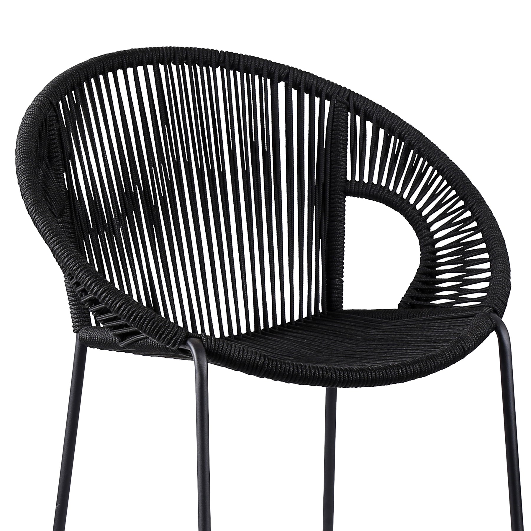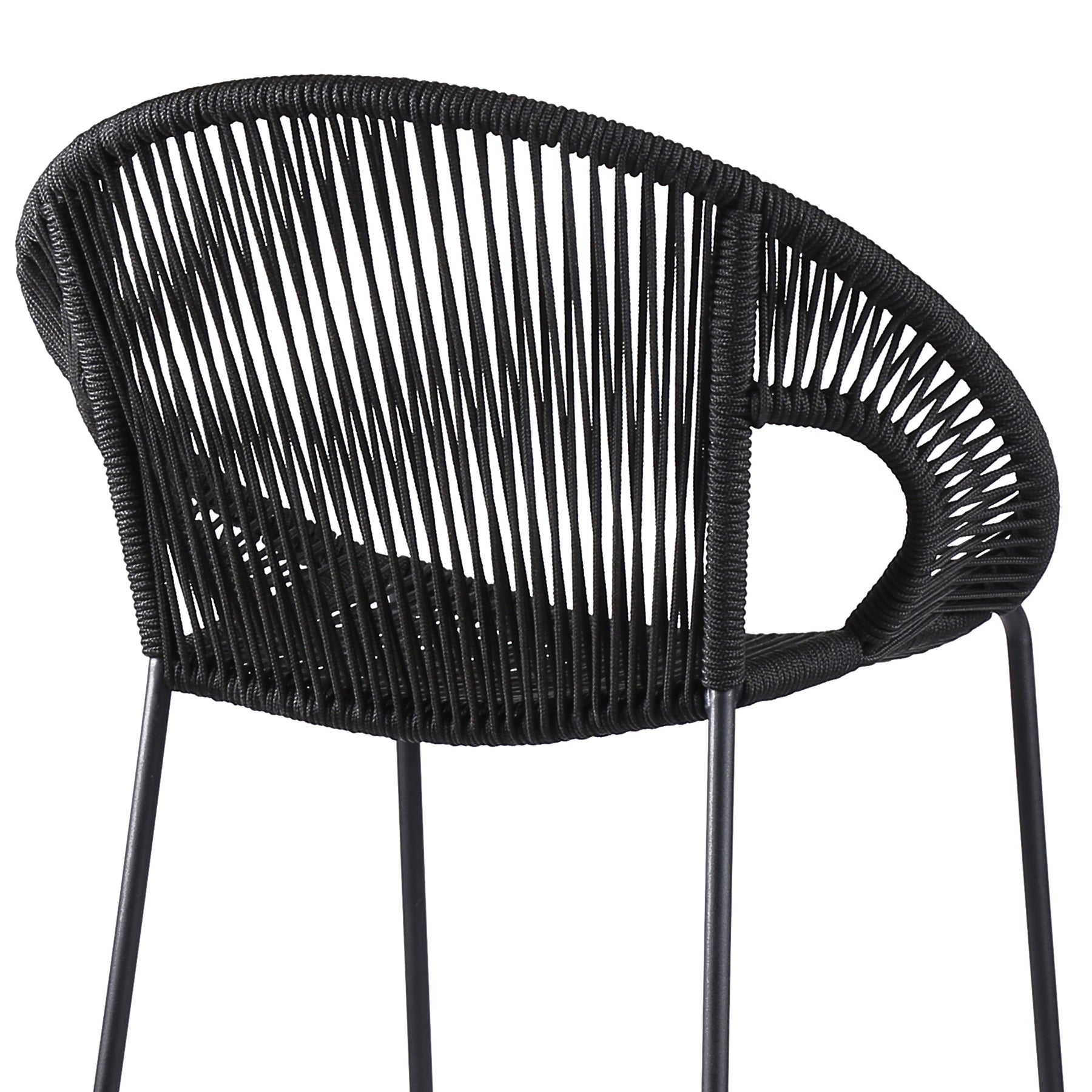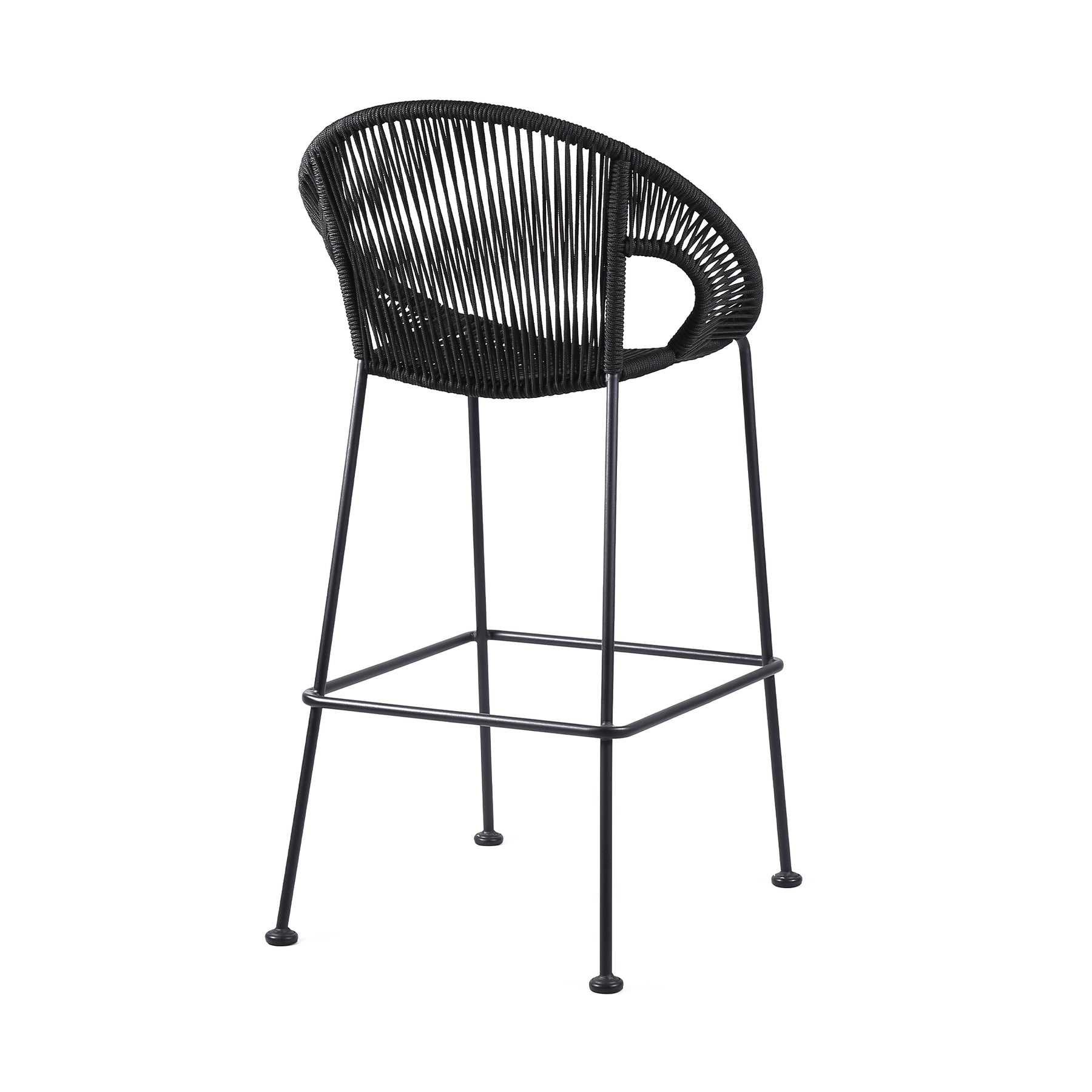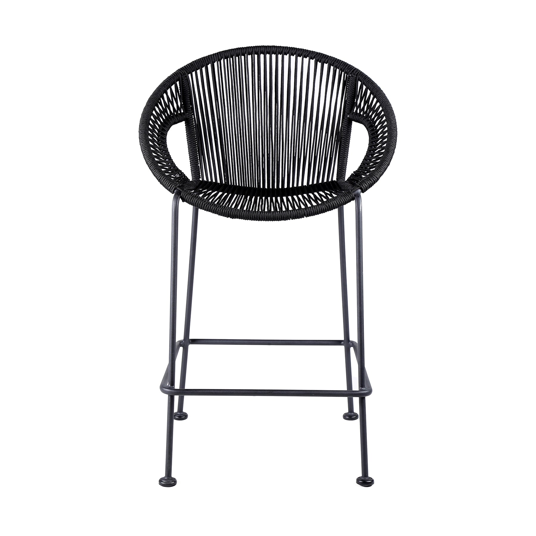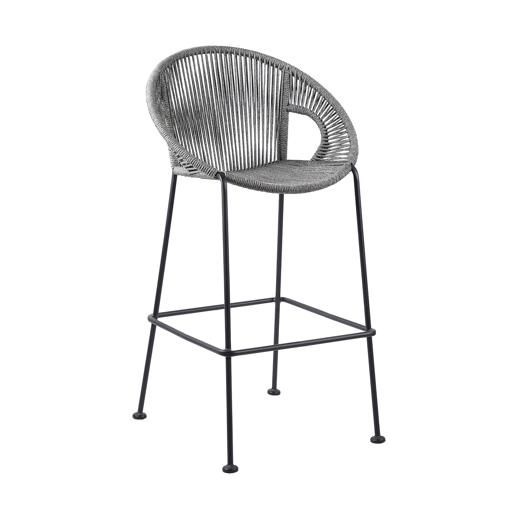 The Acapulco 26" Indoor Outdoor Steel Bar Stool with Black Rope from Armen Living will be such a unique look to your outdoor area. This stool is perfect for any backyard porch, patio deck, outdoor balcony, or for an outdoor counter/bar area. The tall, roomy, and ergonomic design of the Acapulco creates a wonderful experience that will keep you relaxed and comfortable for as long as you are seated. Wrapped in resilient regatta rope cording, the seat and back provide a remarkable level of comfort while still allowing the elements to pass through - also enhancing your seating experience with a softness that rivals most fabrics. Each stool is made with the best craftsmanship, with this stool standing on top of durable steel legs in a black finish for a modern look. The Acapulco is available in your choice of 26†counter height and 30†bar height. Also available in your color choice of black, brick red, grey, or wasabi. Product Dimensions: 25"W x 22"D x 40"H SH: 26"Product Dimensions
