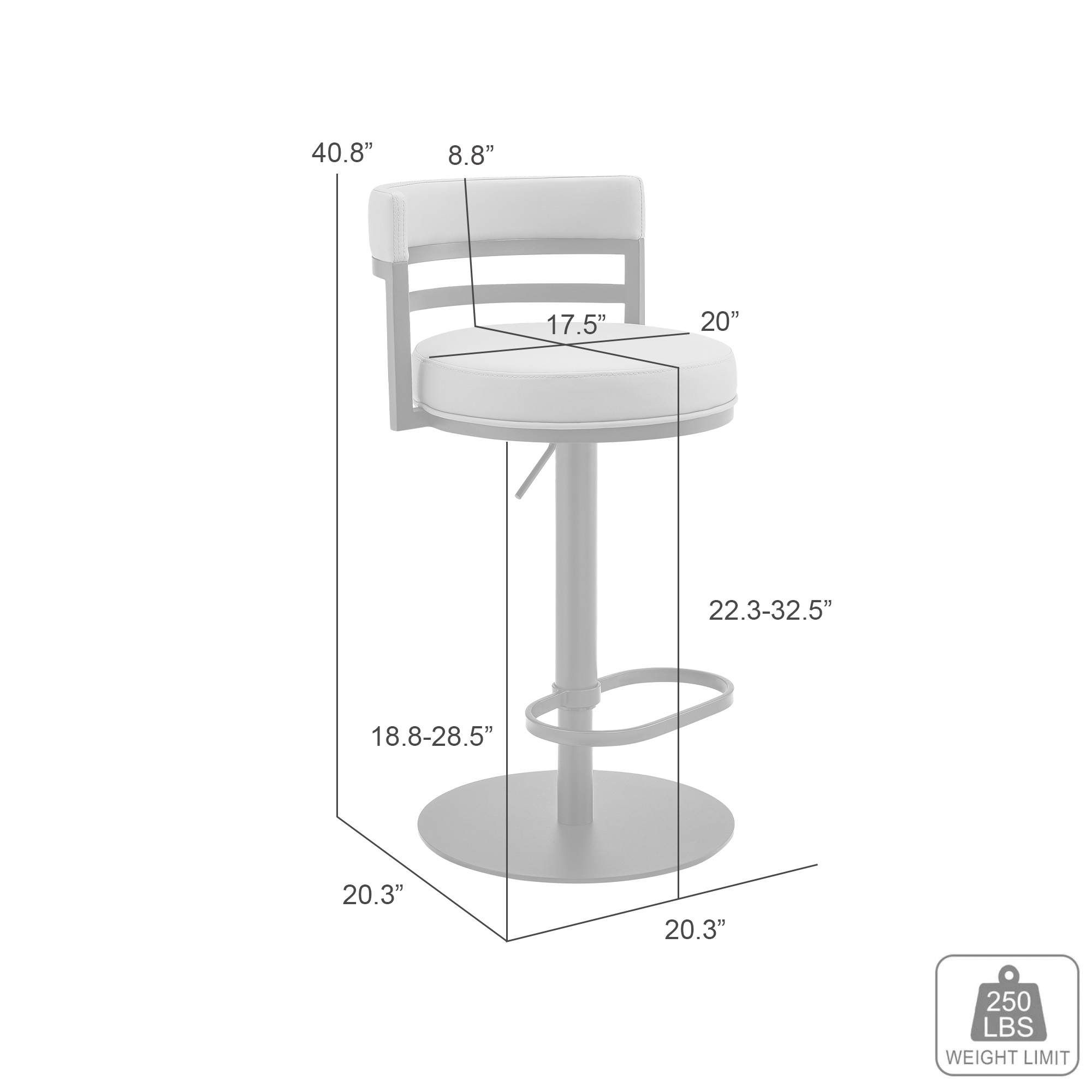 Introducing the Judi Modern Industrial Swivel Metal Adjustable Height Barstool, a perfect blend of style, comfort, and functionality that elevates any space. Featuring a robust metal frame available in Stainless Steel or Iron, this barstool delivers durability with a sleek, contemporary edge, making it ideal for both home and commercial settings. The seat is upholstered in easy-care faux leather and comes in four versatile color options: Black, Beige, Gray, and White. Whether you're designing a bold, modern kitchen or a chic cafe, the Judi barstool adapts effortlessly to your space. Enjoy flexible comfort with a 360-degree swivel and adjustable height, allowing smooth transitions between counter and bar settings. The cushioned seat ensures lasting support, while the sturdy base and built-in footrest offer added stability and comfort. With its modern industrial design, the Judi barstool fits seamlessly into a variety of interiors, from minimalist lofts to eclectic spaces. The combination of clean lines, premium finishes, and functional features makes this stool a standout addition to any room. Perfect for kitchen islands, home bars, patios, or dining counters, the Judi barstool combines practicality and elegance. Its faux leather surface is easy to clean, making it ideal for high-traffic areas or everyday use. Upgrade your seating with the Judi Modern Industrial Swivel Metal Adjustable Height Barstool and enjoy the perfect mix of comfort, design, and versatility. A stylish and functional statement piece, it brings elevated appeal to every meal and gathering.Product Dimensions
