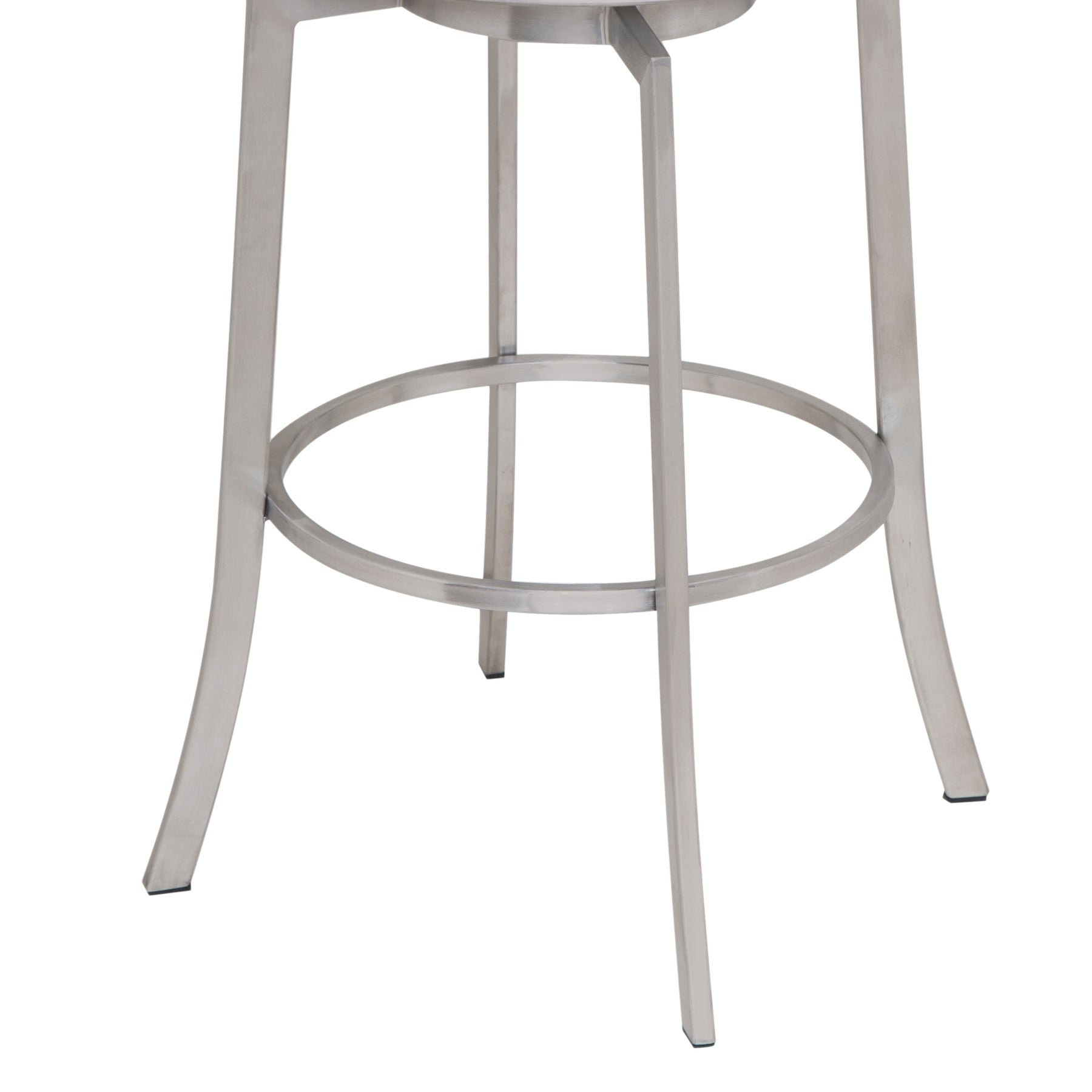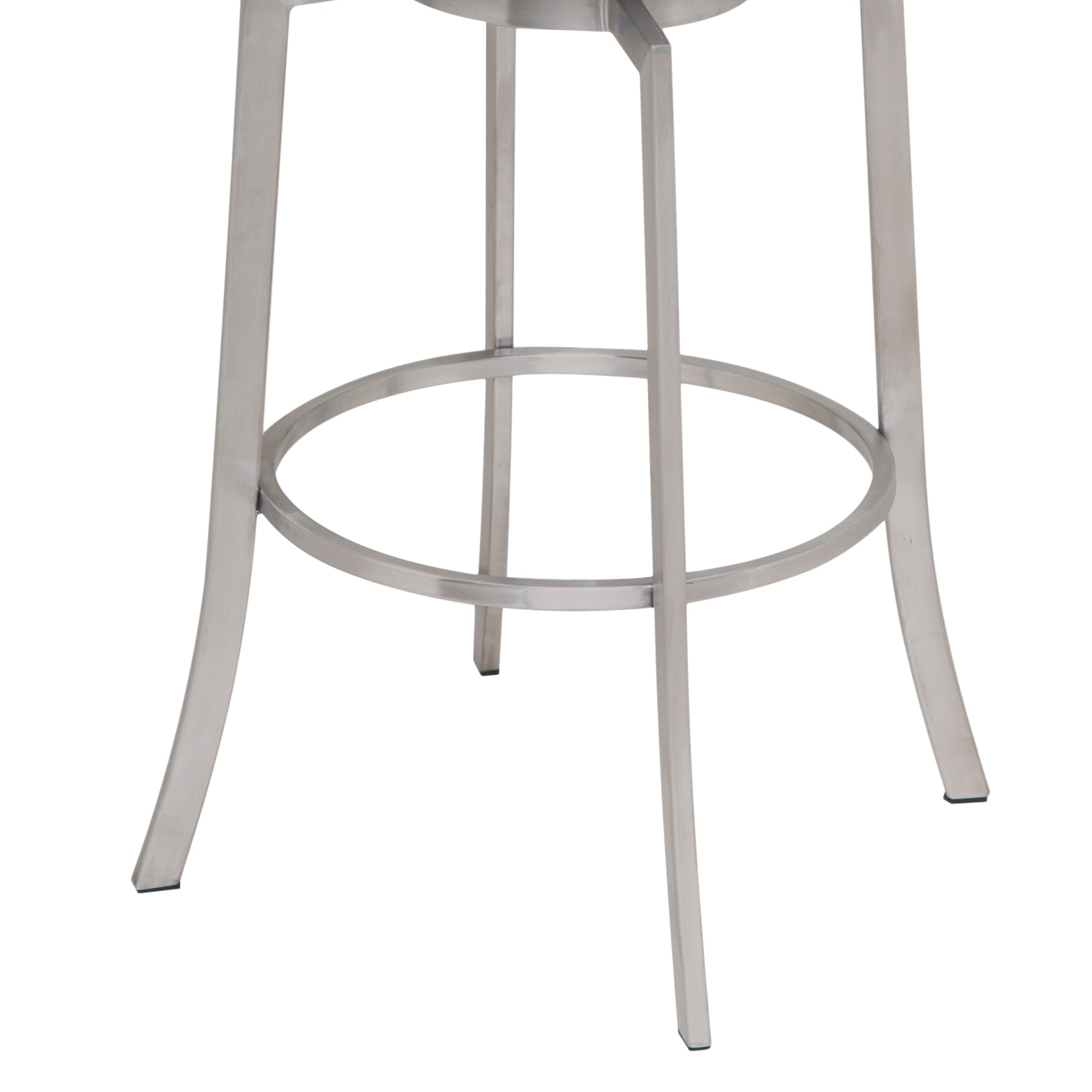 The Viper 26" Swivel Black Faux Leather and Brushed Stainless Steel Counter Stool from Armen Living is the perfect addition to any home or apartment. The 360-degree swivel motion allows you to stay engaged with your guests regardless of their place in the room at parties or gatherings. The Viper s armless design easily allows you to use this stool at your kitchen island, peninsula counter, or home bar. The high-density foam cushion is wrapped in soft faux leather, and this makes for easy clean up, while the ring footrest keeps your feet elevated further adding to your overall comfort. The seat back is rounded to provide extra lumbar support and displays a modern windowpane design. The Viper s flared legs make for a beautiful silhouette that helps this unique stool become a statement piece in your home. This kitchen stool is constructed of high-quality materials and will last for many years to come. The Viper counter or bar stool is available in your choice of grey, white, or black faux leather upholstery and comes in a brushed stainless-steel finish and comes in 26Â or 30Â seat heights.Product Dimensions