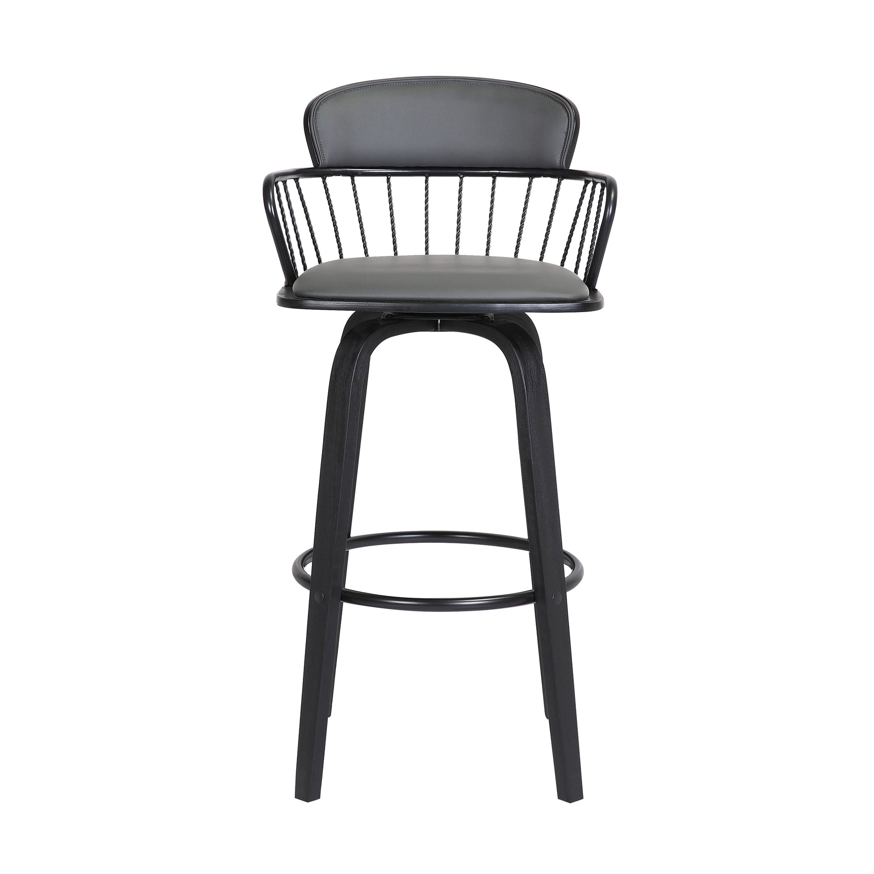 Give a chic and stylish upgrade to your home bar or eat-in-kitchens with our Willow Upholstered Swivel Bar or Counter Stool. A curved and hugging silhouette is molded from metal to attain a sleek and airy design that is perfect for styling and refreshing your kitchen or lounge. This modern bar stool is completed with a generously padded wooden backrest and seat to deliver sink-in comfort. Our counter stool is upholstered in faux leather which does not crack or fade easily; the material is both stain and UV resistant for easy maintenance and longevity. Completed with a beautifully streamlined and modern design, the barstool can be used anywhere from your kitchen to a home office. It can complement a kitchen island, pub table, home bar, or adjustable desk for elevated style and functionality. The counter stool features a wonderful 360-degree swivel function with a smooth gliding system so that you can join in conversation coming from any direction. Designed with quality and comfort in mind, our modern bar stool can serve you for years to come. The Willow swivel bar or counter stool easily incorporates into any home and is available in your choice of 25.5-inch or 30-inch seat height. Available in a walnut wood and golden bronze metal finish with your choice of grey or black faux leather or a black wood and metal finish with grey faux leather upholstery.Product Dimensions