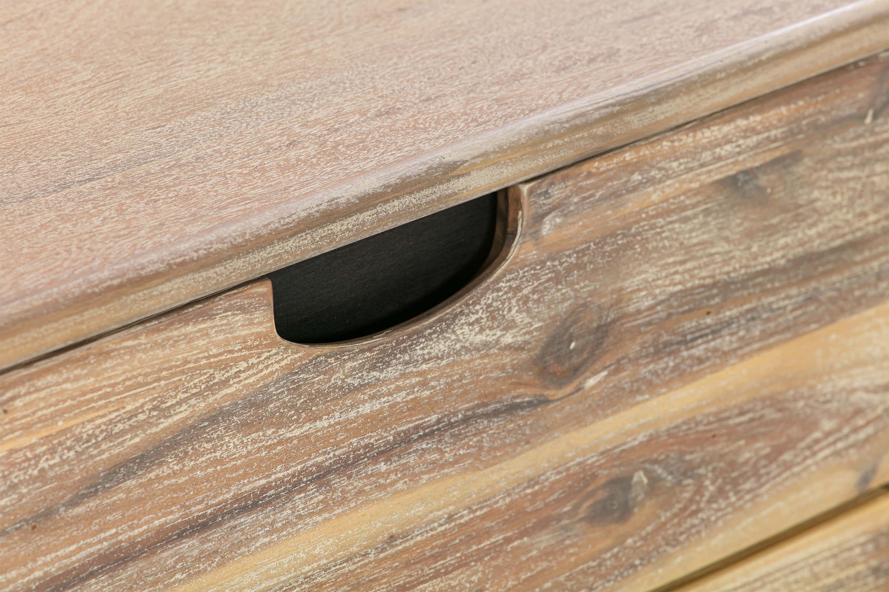 Maximize your storage with ultimate elegance with our Kendra 3 drawer sideboard buffet. Featuring a retro streamlined silhouette, our sideboard includes curved edges and minimal handles that serve as a nod to mid-century modern design. Showcasing the rich and lively grains of Acacia, our buffet console is available in both brown and grey finishes. It features 3 drawers and 2 spacious cabinets to maximize your storage and organizational options. Acacia wood is naturally antibacterial and highly water-resistant, ensuring its universal use in your home. The Kendra can be used traditionally as a sideboard buffet and used in a dining room or entertaining environment, or it can be used as an entry way table, home office storage cabinet, or as a tv stand. This buffet cabinet console is a universal piece that exudes style, function, and convenience. Acacia is the hardest of all hardwoods, characterized by high density and resilience. It is resistant to rot, weatherproof, and immune to fungi and insects. The Kendra is available in your choice of grey or brown acacia wood.Product Dimensions